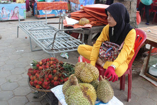 Then there’s the fruit - most of it unrecognisable. There are prickly things rather like Lychees inside and big green Jack-fruit with custard-flavoured seeds. Mangos here are eaten green and crunchy, dipped in chili.