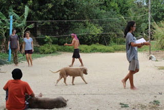 At the moment, the volunteers are rehearsing a play (all in Khmer) about declining fish stocks. It’s improvised theatre featuring a couple of crabs, clams, a lobster and a sunfish wondering where all their relatives and friends have vanished to. Perhaps it’s the sharks? Then they get caught in a fisherman’s net and they realise why. There’s then a long sequence of song and dance as they persuade the fisherman that he can fish with a rod and line, and leave plenty of fish in the sea for the future. When the costumes are finished, it’s going to be taken round the coastal villages as an educational project.
