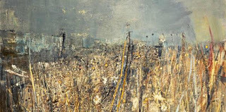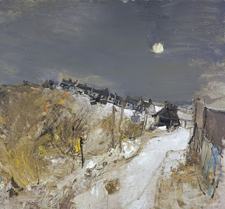 . I've loved Eardley's work ever since I saw her painting of 'Catterline in Winter' at an exhibition about 25 years ago. It mesmerises me; the snow, the tilted line of houses on the cliff top, the winter sun just glimpsed through grey cloud. As a writer it suggests a backstory - people's lives, struggle, living with the elements. There's nothing easy about this painting. It has a dramatic tension made visible by the gully that bisects the canvas and where, in reality, a tortuous path staggers down from the fishermen's cottages to the beach where their boats are pulled up and their nets are drying.