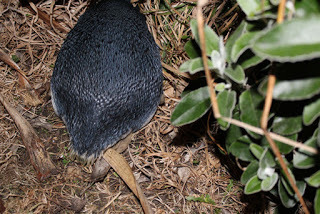 Bush with the strange ghostly shapes of ManukaIt's one of the areas where you can find the smallest penguin in the world - the Blue Penguin - and we were lucky enough to have them partying in the grass around the house. They can be very noisy, but we didn't mind. They are also very shy, but we kept falling over them on the path to the beach, however hard we tried to keep a respectful distance. They were everywhere.