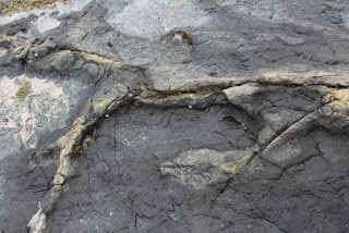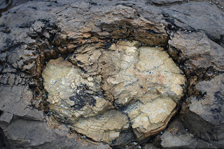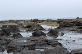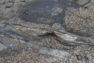 The rear end of a small Blue Penguin hiding in the bushesWe were only a short walk along the beach from the fossilised forest, which is more than 170 million years old. You can climb out into what was once a swamp with cycads and tree ferns, felled by a flood and then buried in volcanic ash. There are stumps