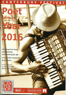 This year I was lucky enough to be shortlisted for the Canterbury Poet of the Year award and even more lucky to be one of the prizewinners (a bottle of bubbly!). The line up was very impressive and the 14 poet shortlist included Pat Borthwick, Jane Lovell, US poet Catherine Higgins-Moore (who read by video link), David Attwooll (who sadly died just before the award), Brian Clark and Martin Cordrey. I didn't imagine for a moment that I'd be one of the runners up. The Poet of the Year 2016 is Jen Syrkiewicz for a magnificent poem called 'Love (Through Lidded Eyes)'.