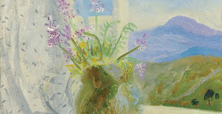 It's an indoor life she paints - canvases looking out at the world through windows. Flowers in pots and jars rather than growing naturally outdoors. The wild Cumbrian landscape on her doorstep rarely makes it onto the canvas, though I loved her seascapes.