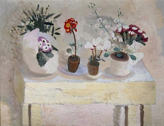 I loved her words in diaries and letters (The Writings of Winifred Nicholson, ed. Andrew Nicholson, Faber & Faber, 1987). Her paintings, though I liked them as prints on postcards or images on screen, didn't appeal to me so much in reality and didn't seem as interesting as her writings about painting. Maybe this is a personal thing - I don't do pretty and it's an adjective that could be applied to her paintings - particularly the still lifes.