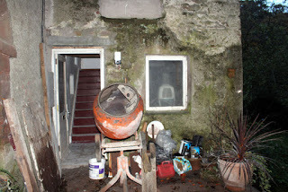 If you're wondering why I've been so quiet here recently, perhaps these photos will explain. Flood repair work is ongoing - the electricians have finished tearing out the walls, floors and ceilings and now the Boys have moved in to build and decorate. I live with a cement mixer on the doorstep. On the outside wall behind it, you can see the green mould from the flood water. We still haven't dried out and on December 5th it will be a year since the flood changed all our lives here.