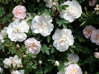 This is what it looks like now, with a temporary fenceI've lost most of my beautiful old roses, a thick flowering hedge more than two metres high, nurtured for a couple of decades. I mourn their poetic identities. Mme Albert Carriere, Cardinal Richelieu, the Queen of Denmark, Park Direktor Riggers. My Scottish rose, Stanwell Perpetual, appeared to be making a recovery, but has since had a relapse. Only the deep red Dublin Bay (pruned to a skeleton) and the French aristocrat Giselaine de Feligonde seem unperturbed. The Rambling Rector is still rambling and Paul's Himalayan Musk as rampant as ever, though both had to be drastically cut back to untangle flood debris.