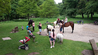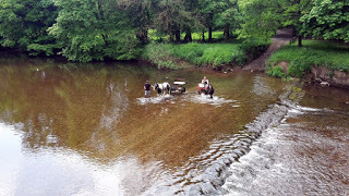 The horse on the left had to be led through the ford - he was terrifiedI love watching the horses being put through their paces. Today there were several young horses being introduced to the water for the first time - one or two were very reluctant.