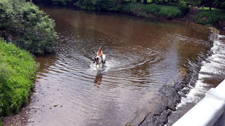 I've spent today erecting a fence against horses - and humans. Unfortunately very necessary. Last night there was a disturbance outside which I ignored, since there was only one of me and a group of very rowdy people on the river bank, but this morning the big, riverside door to the mill was lying face down on the riverbank and the ground floor open to the world. In town a shopfront had been smashed in and other damage reported. It's very sad that this ancient event has to be marred by violent public disorder. A few individuals.