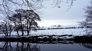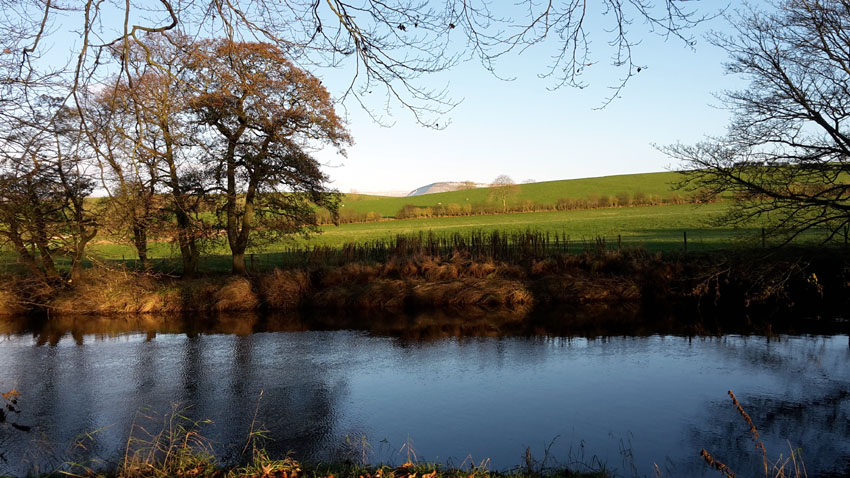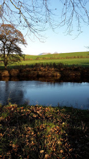 I chose a place I love - a small copse of trees on the bank of the River Eden, where you get a good view of the fells and the farmland across the river. It was late afternoon, with the sun low, illuminating the fields and the distant white-capped hills.