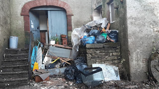 But the biggest shock was finally being able to open the door to the tenant's flat and see what families all over Cumbria were having to face. Furniture and personal items, sodden and muddy, tossed around and piled up by the flood water which had reached up almost to the ceiling. Cooker, fridge, washing machine and every other kitchen appliance completely ruined. We can't get flood insurance here, because we live on the river bank, virtually in the river, so replacements and repairs have to be funded ourselves and, like many others here, we face several months without income until the building can be dried out. Luckily most of the tenant's belongings, upstairs, were intact.