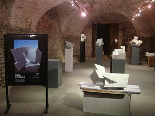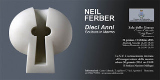 An invitation to celebrate ten years of chipping marble into shapes like this.The excuse is that Neil has been given an exhibition by the Commune of Pietrasanta, in a gallery on the corner of the Piazza. He's been very busy for the past couple of weeks, polishing and painting and constructing stands and lugging heavy bits of marble down the main street on a barrow. Saturday night is the official opening and I can't not be there to celebrate with him. So, tomorrow evening (storms permitting) I will be on a plane to Italy with my best frock in a suitcase.