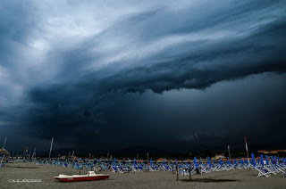 But now I know. There comes a moment, sometime after lunch, when the air outside becomes a lot hotter than the air inside. That's the time to close the windows and the shutters and keep as much of the precious cool air in as you can. We've been suffering - like other parts of Europe - from a wave of heat bulging up from North Africa, laden with sand and red dust. We've also had some spectacular storms. This was a few days ago. Pietrasanta, our small town, was under the brightly lit centre. We were sitting outside a small bar and watched it come over us like an alien space ship.