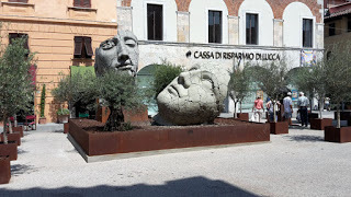 Igor Mitoraj's clay faces baking under the sun in the piazza this week.
