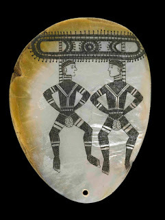 A mother of pearl pendant that would have been worn by an aboriginal woman of status