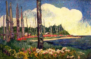 Emily, stifled by the life she was forced to lead in respectable Victoria, became fascinated by First Nation art. She found a couple willing to take her to the remote islands by boat and spent months camping out in order to paint the decaying totem poles, villages and other relics of the culture that was being gradually eroded. It is now a very important record of a vanished world.
