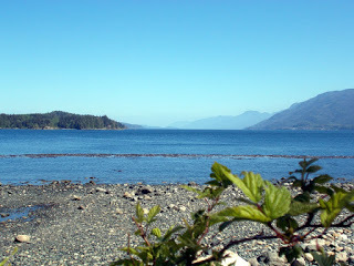 I'm sitting in the middle of a swamp on the top of a hill overlooking a stretch of the Inner Passage between the mainland of British Columbia and Vancouver Island.
