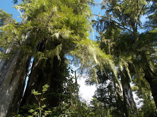 Most of the trees that still have foliage are draped in the lichen they call 'Witches Hair' here.