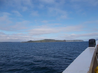 I've been enjoying being able to walk. The island's shoreline is very beautiful - the beaches are piled with boulder and tree trunks from the winter storms and there are stunning views across to other islands and the mainland.