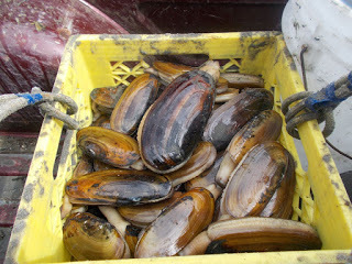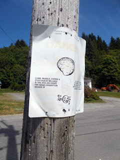 A big fish cannery that was built along the shore has long since fallen into the sea, and there are notices all along the harbour warning not to catch mussels, clams or oysters since they're all contaminated with 'Paralytic Shellfish Poisoning'. This comes from algal blooms in the Pacific, which used to be rare, but have become more frequent.