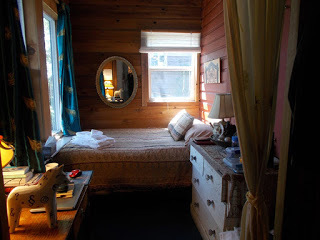 So here I am, in Masset, Haida Gwaii, in Margaret Atwood's bedroom. I'm staying at the famous Copper Beech, where Margaret stayed when she was writing a book and, due to a wonderful coincidence, I've been given her bedroom, which is called 'The Retreat'. It's more like a ship's cabin than a room.
