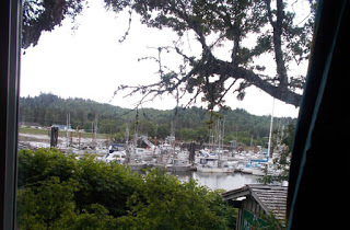 You can keep an eye out for Orca while you have breakfast.It's very cosmopolitan here - there are quite a few Americans, the cafe over the street is run by a couple from India, there are several Korean fishermen, Chinese store-keepers and quite a lot of Brits. But it's the First Nation residents I've come to meet. On my first evening, taking a quick walk along the shoreline to shake the journey out of my legs before I went to bed, I came across an old cemetery with fallen totems.