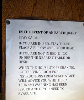 Just one note of caution - Haida Gwaii sits on the Queen Charlotte fault, which is very active. There's a notice on my bedroom wall fit to strike fear into the most valiant soul. In the event of an earthquake . . .