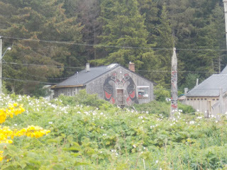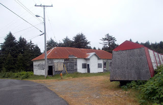 The old museum, now abandoned. There are no shops that I could find - the big supermarkets are in Masset, and - though I looked for somewhere that might sell Haida artwork or carvings, I didn't see any, though I know there are some in Masset. Perhaps tourists don't usually go to Old Masset. That was definitely my impression.