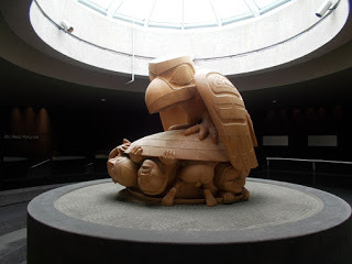 Needless to say, the colonial authorities weren't happy with this and Potlatches were banned - participants being liable to imprisonment. All the ceremonial regalia, robes and masks, dishes, banners and tribal emblems, was taken off to go to museums or to be sold to private collectors.
