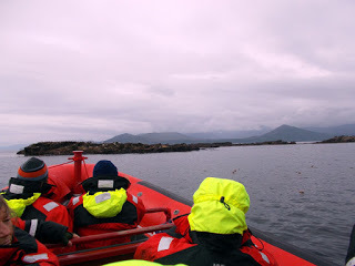 We went out in a Zodiac, all kitted out in waterproofs and flotation jackets, with a Haida crew, for a ride that was about 2 hours or more south in the turbulent waters of Hecate Strait, heading for Skedans - whose Haida name is K'aanu. So many people died here at one time that there was no one left to bury the dead and no one else dared approach the island in case of infection. Even today, visitors to the island come across bones on the forest floor that have to be reverently covered over.