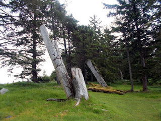 These villages are heritage sites and you can't go unaccompanied. There are watchmen at every location - young people who volunteer for 2 week shifts, without any kind of mod cons, in a hut, to guard their history. At Skedans it was two girls. They said they weren't afraid of the bears or the storms, but had found the 'powerful energy' of the place very hard to get used to.