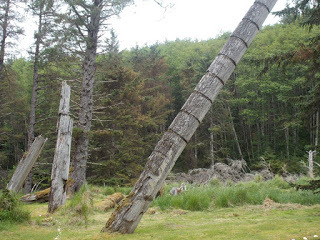 Once, the whole of the shore was lined with totems in Masset, house poles and mortuary poles fronting the Haida longhouses.