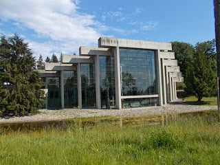 It's a very modern building and the concrete architecture mimics the uprights and cross beams of traditional First Nation 'Big Houses' built by the people of this area (Kwakwaka' Wakw). They have some examples of the originals inside.