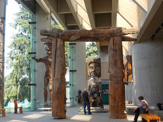 I was lucky enough to find a Chinese supermarket and get supplies for those 4am snack attacks and the odd pot noodle soup for budget evening meals. There are huge numbers of Chinese and Japanese here - all the public signs are in English, French and Japanese. Most of the shops and restaurants seem to be oriental. And the city is vast! But thanks to a very helpful person at the airport I'm equipped with a map and detailed directions. Once I've got the hang of the public transport system (SkyTrain and buses) I'm off to the Anthropological Museum to look at their First Nation collection with high expectations of a treat.