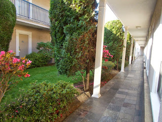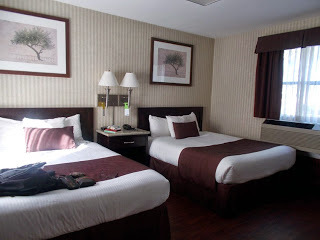 I spent the first night struggling with jet-lag, and eating cornflakes at 4.30am watching ridiculous Canadian TV. It was either ice-hockey or sit-com repeats. I'm staying in a very cheap motel on the outskirts of town, but I have two queen size beds to choose from and the front door opens onto a beautiful courtyard. There's a Macdonalds next door if I get desperate (but I won't!).