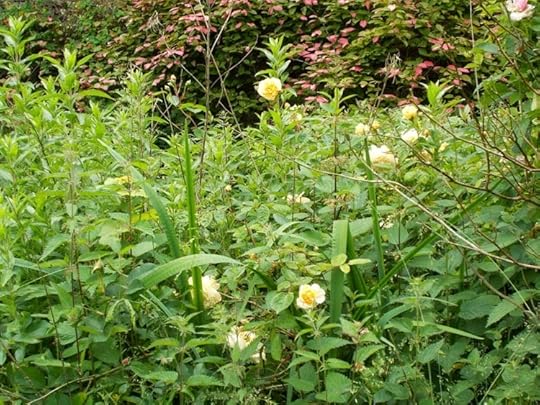 There were roses too, lost in the frantic weed growth, but you could smell the perfume. This one is an old rose called Buff Beauty - one of my favourites.
