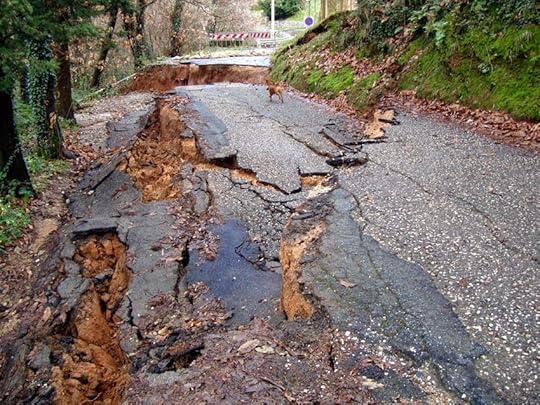 The party at Peralta went on for three days, so her life was very thoroughly celebrated. Fortunately for the guests, the Comune chose to open the road to allow residents through, even though it's not finished. In January, after the catastrophic storm that dumped 300mm of rain on us, the road looked like this - 6 feet of crumbling slippage