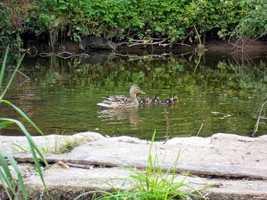 Cement is not a sympathetic material hereThere’s something natural and graceful about the process of decay - it makes spaces for wild life to flourish. There's always a heron fishing in the early morning light. Today I spotted a duck with her tiny ducklings, and once we saw an otter walking up the face of the weir with two cubs.