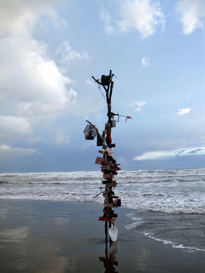 Last time we were down here, someone had been very creative with the rubbish, erecting an ‘installation’ that had a very direct message. It's all made from objects found on the beach.