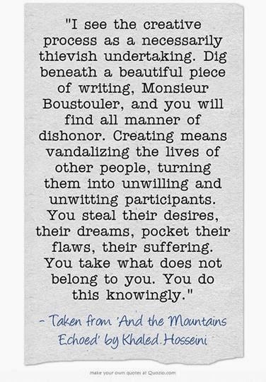 Jane found this wonderful quote about writing from Khaled Hosseini. 'A Thievish Undertaking'.