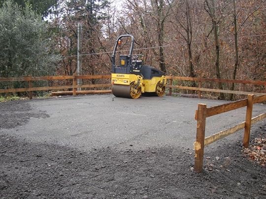 They are building a little temporary parking place for residents in a field, with a footpath to the village, but it's a long walk carrying everything you need (logs, heating oil, animal feed etc). Also a long walk for emergency services.