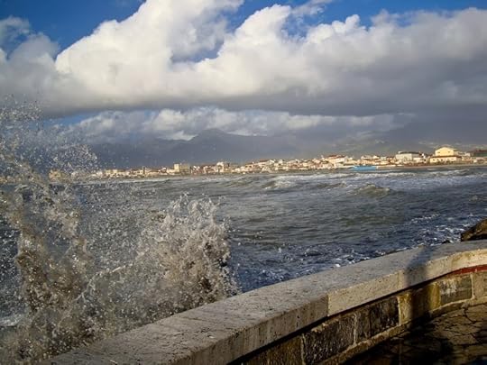 We're having wild weather here in Tuscany, like many other parts of Europe. But today was fine, with even a glimmer of sunlight, so we headed down to the beach, where the waves were crashing in from a very stormy sea.