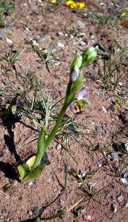Nature won in the end - the sea penetrated the mines - Norman's uncle was one of those who died in rock falls - and the inner sea wall subsided and collapsed. The lagoon is now a haven to wildlife. We saw greylag geese, plovers, oyster catchers and terns nesting and grazing. But the star of the show is the bee orchid, which Norman famously wrote about. One or two were just coming into blossom when we were there and difficult to photograph. But the orchid does look rather like a bee alighting on a flower.