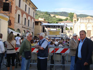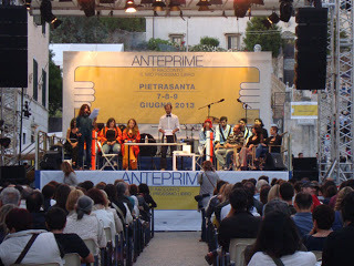 One of the features of the literature festival, which ended last night, was a creative writing slam on the big stage in the piazza. A group of students read their work over the microphone, critiqued each other and then voted a winner. I'm not sure I'd ever have had the courage to allow my work to be criticised so publicly. They were a very lively group, but my Italian wasn't good enough to judge the stories and poems being read out.
