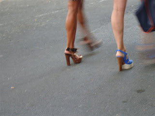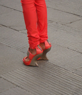 The atmosphere on a Sunday afternoon and early evening is always buzzing - it's the 'passagiata' - where everyone puts on their best clothes and wanders around saying hello to everyone else. It's the perfect opportunity for people watching. And shoe spotting. Italy has some of the most amazing shoes in the world and they're worn with flair. Here's two pairs that caught my eye.