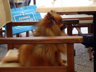 Handbag dogs are always on display too - they're called handbag dogs because they're very small and often to be seen tucked into a handbag on someone's shoulder. They don't walk! This one was occupying a bar seat and had its own little dish to drink out of.