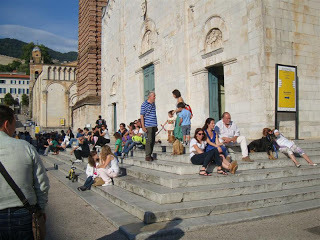 Pietrasanta's summer festival of literature 'Anteprime' - Italian and international, starts today in the Piazza and I'm going to be there trying to catch the odd word or phrase of recognisable Italian! The line-up includes literary stars such as Dan Brown and Orhan Pamuk, as well as journalists, TV satirists and critics. The atmosphere is already buzzing. Yesterday the sun came out for the first time and summer officially kicked off! We were all out on the streets making the most of it.