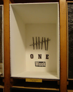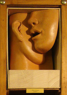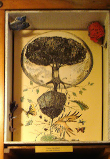 We were invited to an art exhibition on the subject of Words - Parole, Parole - at a small trattoria in one of the side streets and I was curious - and not a little sceptical! - at what I might be going to see. I'm not a great fan of 'installations'. But the show blew me away. This is what the whole thing looked like, occupying one wall of the restaurant.
