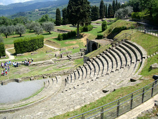 Fiesole is on a hillside overlooking Florence and it has its own quiet beauty. There's a wonderful Roman theatre, very well preserved