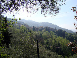 We had a very good lunch in one of the terraced restaurants in the town and then took Vincent and Helen back to the house, which is out in the country, surrounded by tranquil gardens, perfect for writing and thinking or just soaking up the sun. Not that there's much of that in Italy this spring. The days are changeable - mixtures of hazy sunshine and cloud and rain. Very cool too. Last night we had to put on the heating!!
