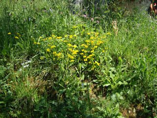 Today I felt rather better because the sun - which has been very reluctant in Italy this year - did a bit of hazy shining, and - a month later than usual - the wild flowers are beginning to bloom in the olive grove in all their mad glory.